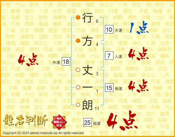 行方丈一朗さんの総運は25画の4点!