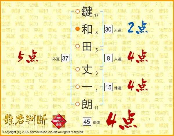鍵和田丈一朗さんの総運は45画の4点!