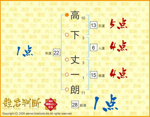 高下丈一朗さんの総運は28画の1点!