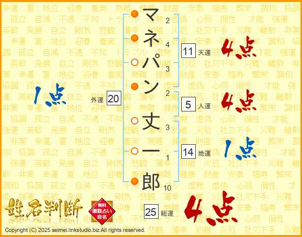 マネパン丈一郎さんの総運は25画の4点!