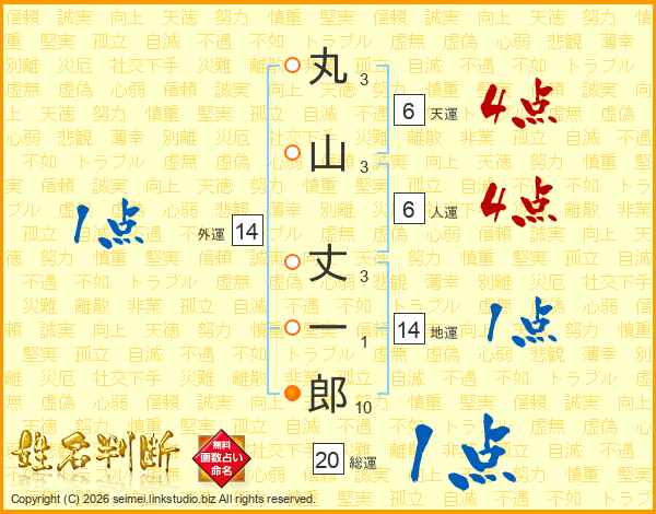 丸山丈一郎さんの人運は6画の4点!