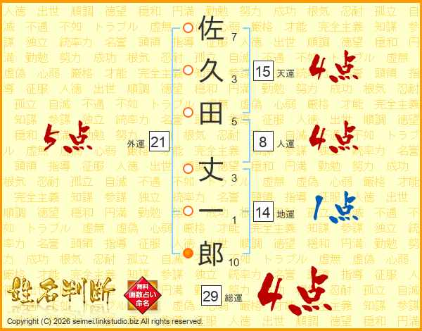 佐久田丈一郎さんの総運は29画の4点!