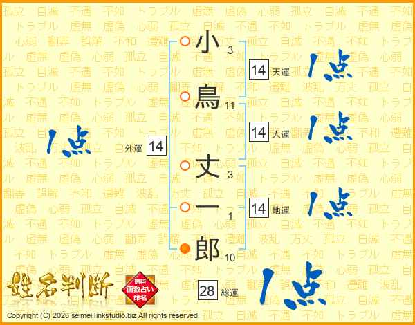小(3画)鳥(11画) 丈(3画)一(1画)郎(10画)
