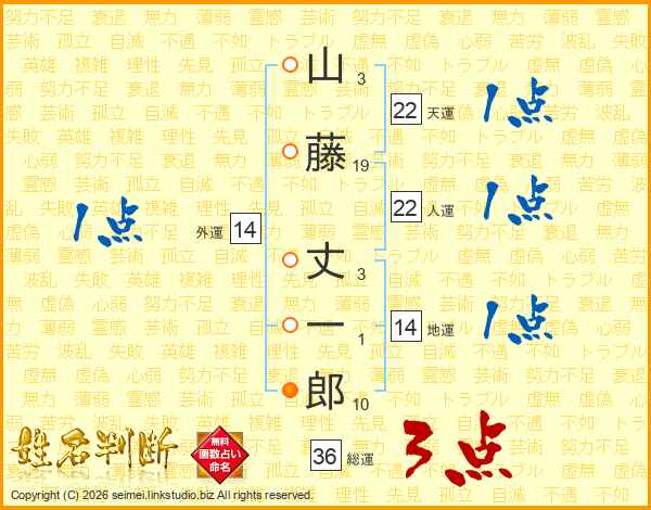 山藤丈一郎さんの総運は36画の3点!