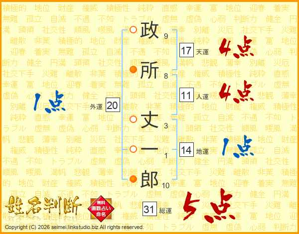 政(9画)所(8画) 丈(3画)一(1画)郎(10画)