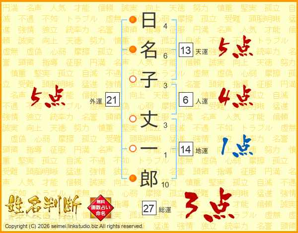 日(4画)名(6画)子(3画) 丈(3画)一(1画)郎(10画)