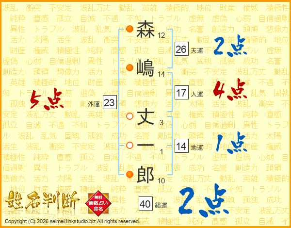 森嶋丈一郎さんの天運は26画の2点!