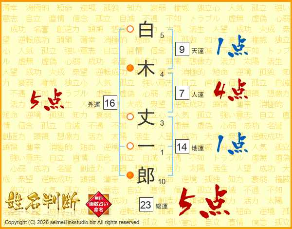 白(5画)木(4画) 丈(3画)一(1画)郎(10画)