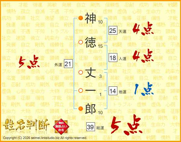 神徳丈一郎さんの総運は39画の5点!