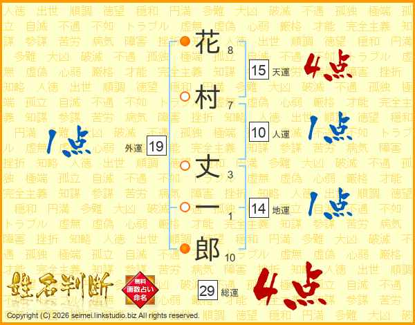 花村丈一郎さんの総運は29画の4点!