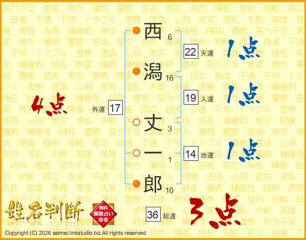 西潟丈一郎さんの総運は36画の3点!