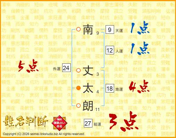 南(9画) 丈(3画)太(4画)朗(11画)