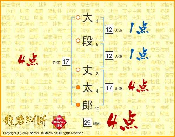 大段丈太郎さんの総運は29画の4点!