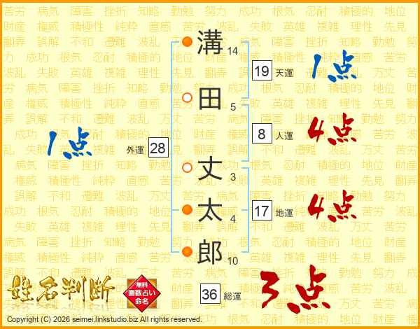 溝(14画)田(5画) 丈(3画)太(4画)郎(10画)