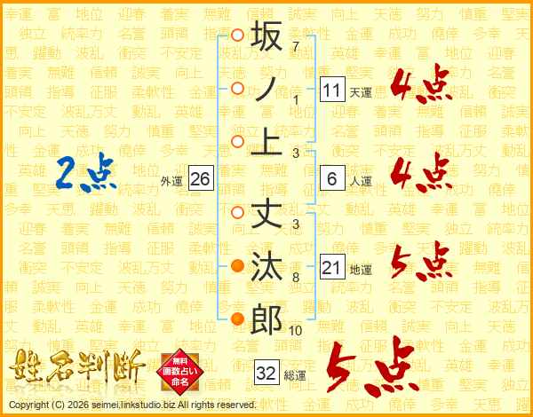 坂ノ上丈汰郎さんの総運は32画の5点!