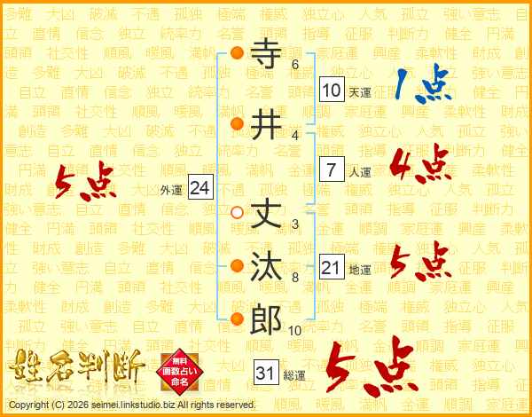 寺井丈汰郎さんの天運は10画の1点!