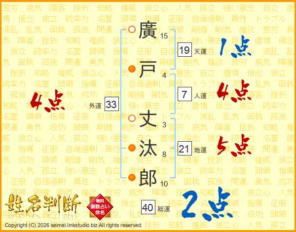 廣戸丈汰郎さんの総運は40画の2点!