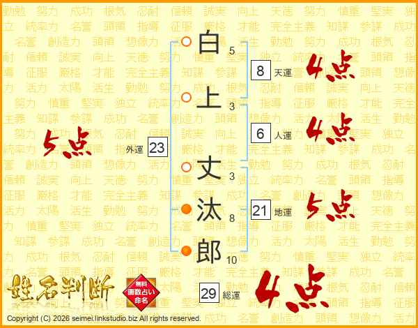 白上丈汰郎さんの外運は23画の5点!