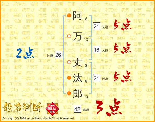 阿万丈汰郎さんの総運は42画の3点!