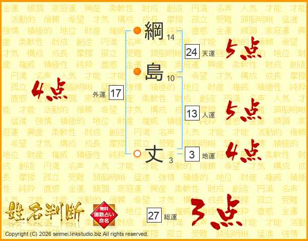 綱島丈さんの天運は24画の5点!
