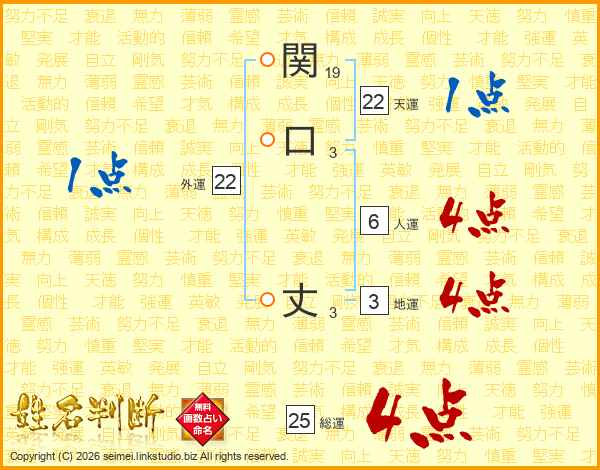 関口丈さんの総運は25画の4点