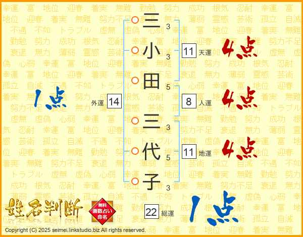 三(3画)小(3画)田(5画) 三(3画)代(5画)子(3画)
