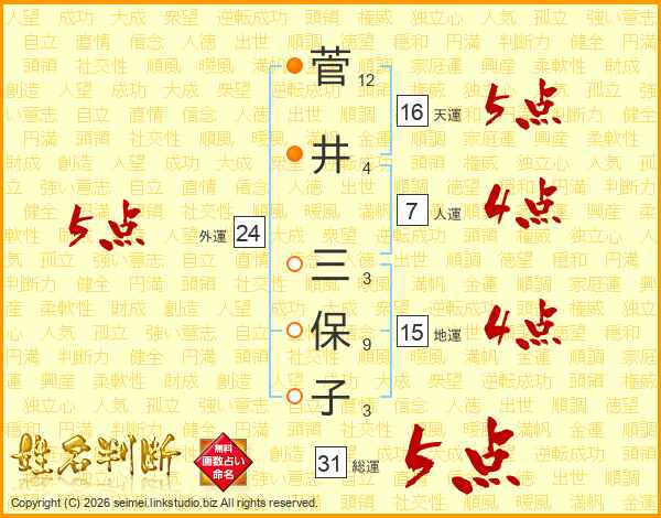 菅井三保子さんの外運は24画の5点!