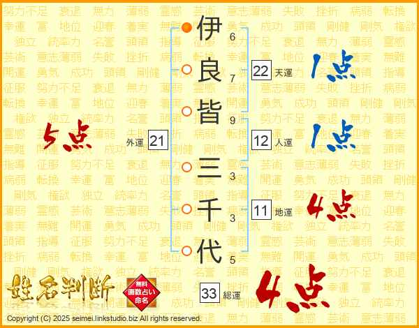 伊良皆三千代さんの総運は33画の4点!