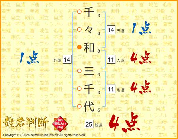 千々和三千代さんの総運は25画の4点!
