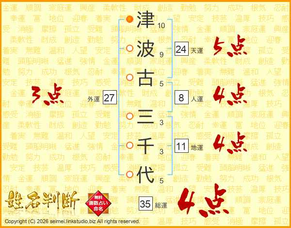 津波古三千代さんの総運は35画の4点!