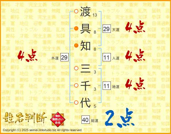 渡具知三千代さんの総運は40画の2点!