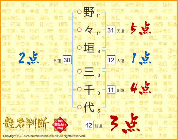 野々垣三千代さんの総運は42画の3点!