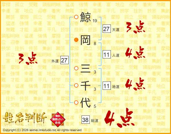 鯨岡三千代さんの総運は38画の4点!