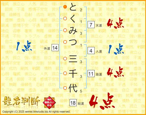 とくみつ三千代さんの総運は18画の4点!