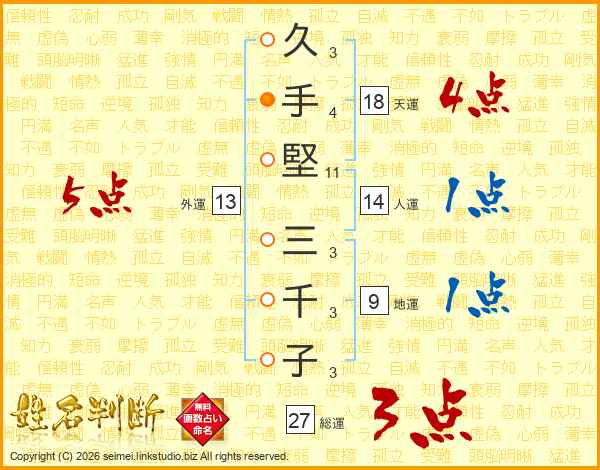 久手堅三千子さんの総運は27画の3点!