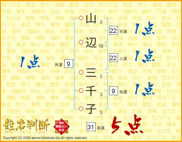 山辺三千子さんの総運は31画の5点!