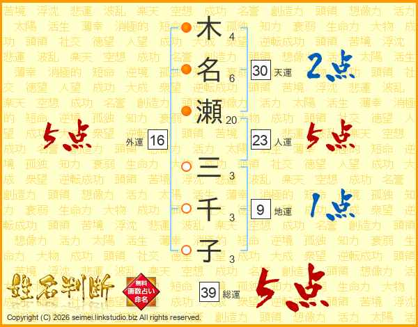 木名瀬三千子さんの総運は39画の5点!