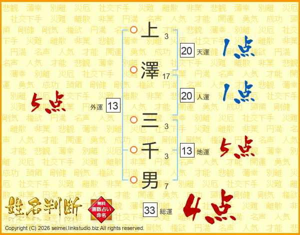 上澤三千男さんの総運は33画の4点!