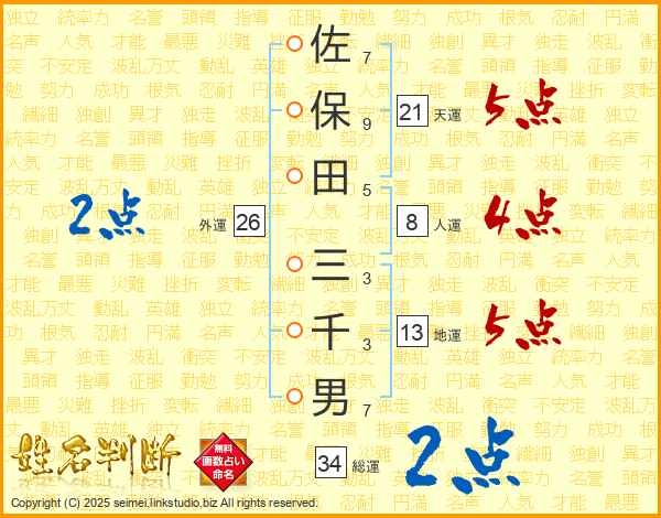 佐保田三千男さんの天運は21画の5点!