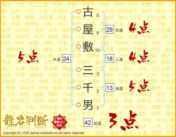 古屋敷三千男さんの総運は42画の3点!