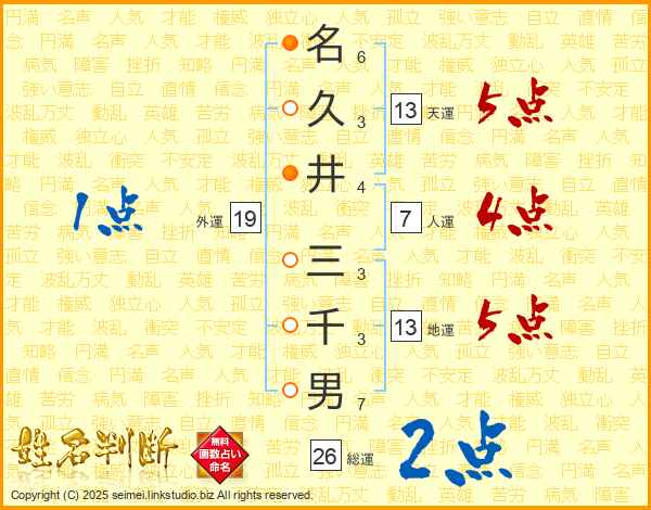 名(6画)久(3画)井(4画) 三(3画)千(3画)男(7画)