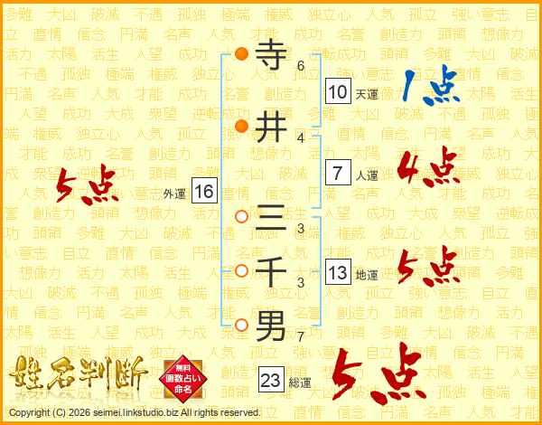 寺井三千男さんの総運は23画の5点!
