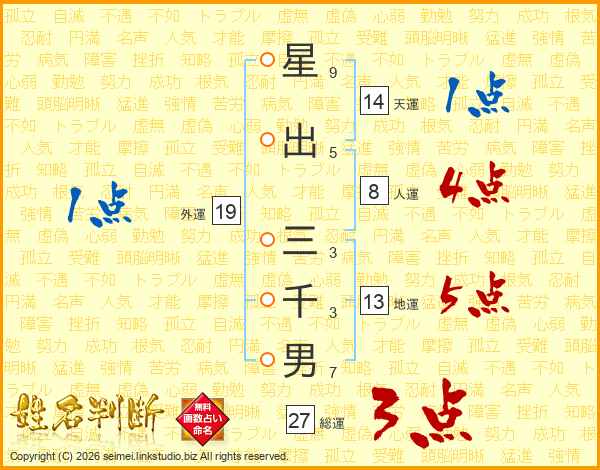 星(9画)出(5画) 三(3画)千(3画)男(7画)
