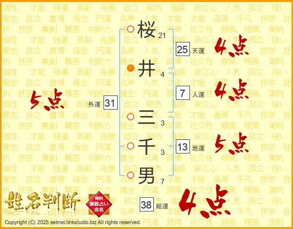 桜井三千男さんの天運は25画の4点!