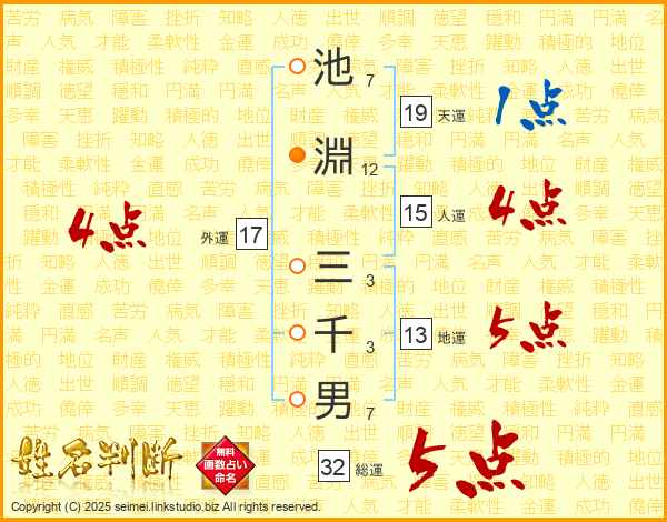 池(7画)淵(12画) 三(3画)千(3画)男(7画)