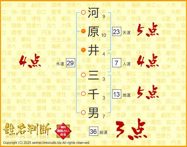 河(9画)原(10画)井(4画) 三(3画)千(3画)男(7画)