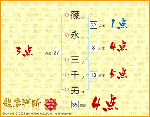 篠(17画)永(5画) 三(3画)千(3画)男(7画)