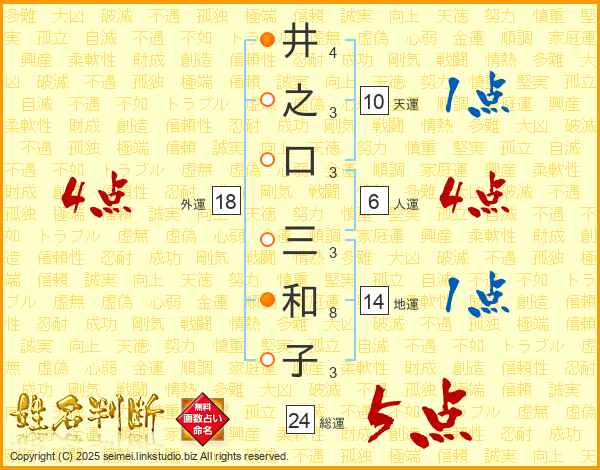 井(4画)之(3画)口(3画) 三(3画)和(8画)子(3画)