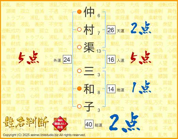 仲村渠三和子さんの総運は40画の2点!