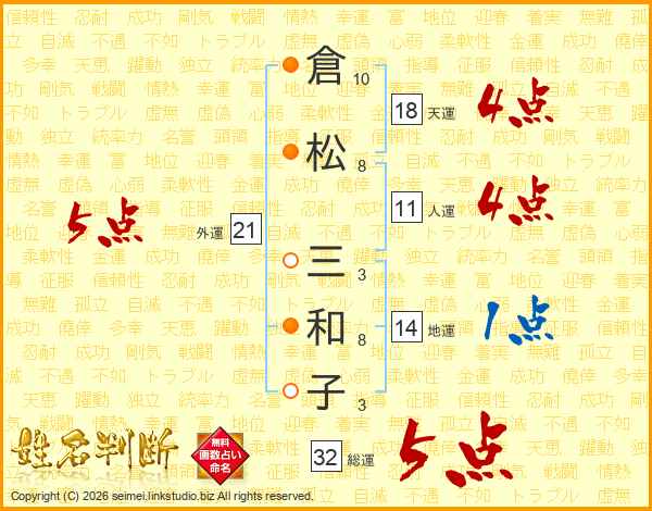 倉松三和子さんの総運は32画の5点!